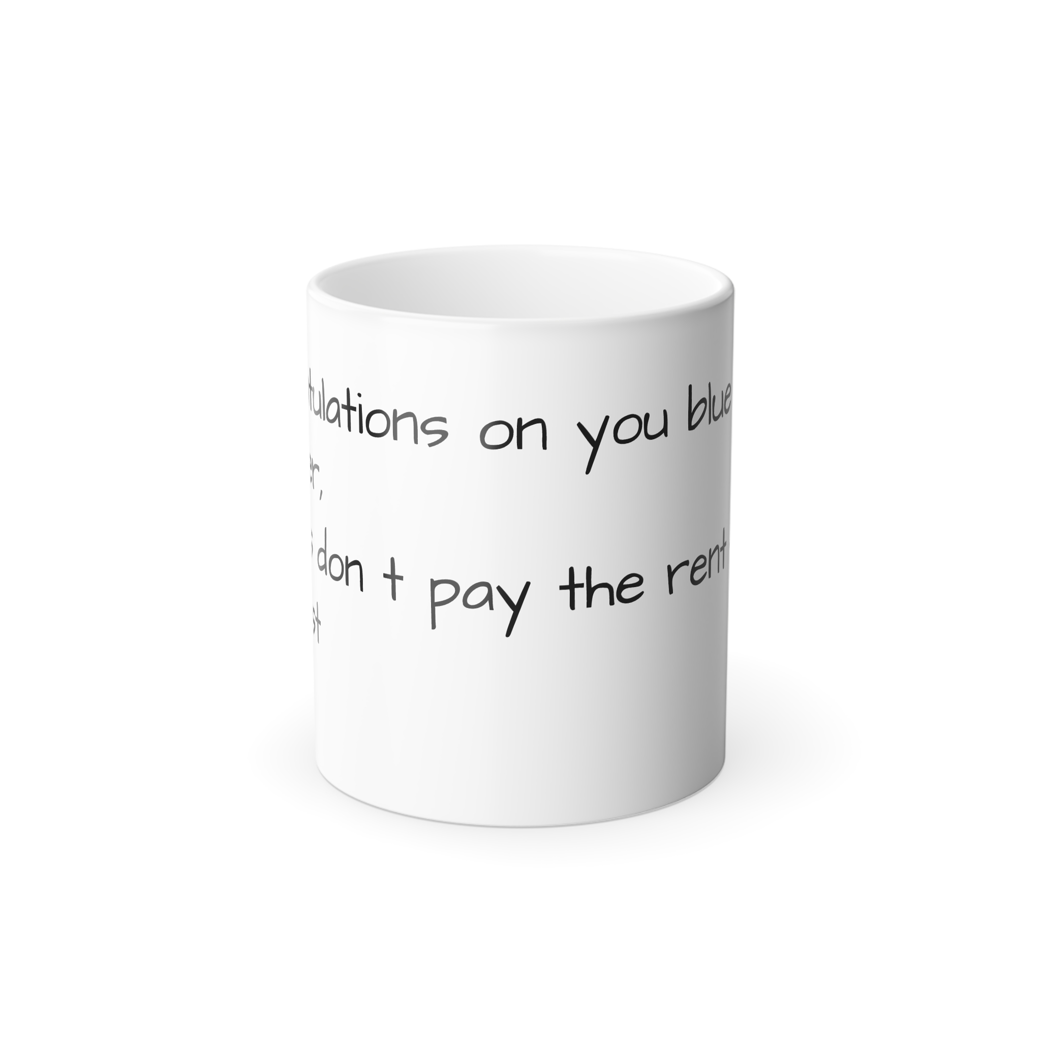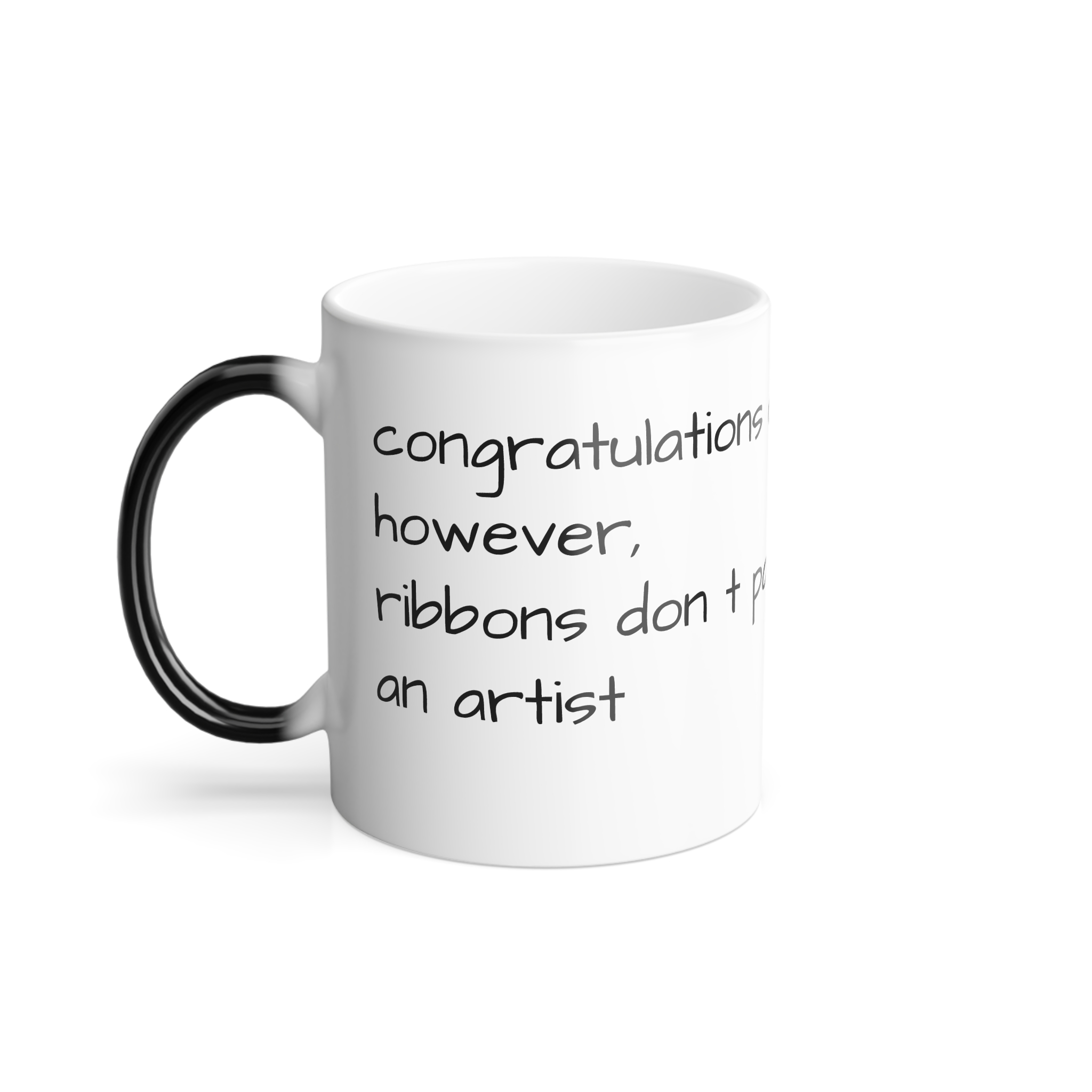 Color Morphing Mug, 11oz. congratulations on your blue ribbon, however ribbons don’t pay the rent for an artist